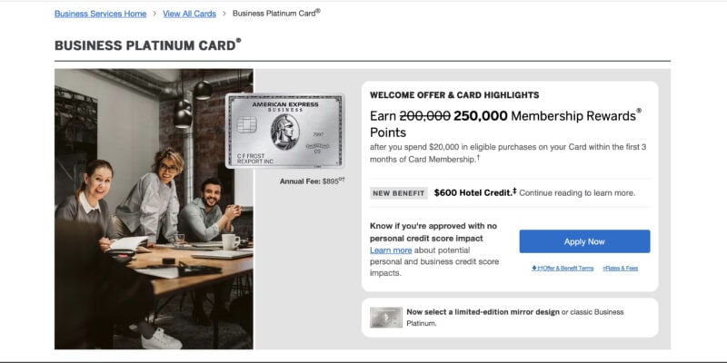 A 250,000-point offer on the Business Platinum is massive. Even with the $895 annual fee, the first-year math is a no-brainer if you can comfortably hit the $20,000 spend requirement.