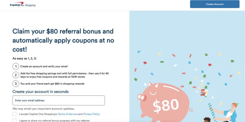 You can earn $80 in Capital One Shopping rewards (up from $40) by signing up through a referral link and using the Capital One Shopping extension for 90 days. The process is simple, but you have to follow each step exactly or the bonus won’t trigger.