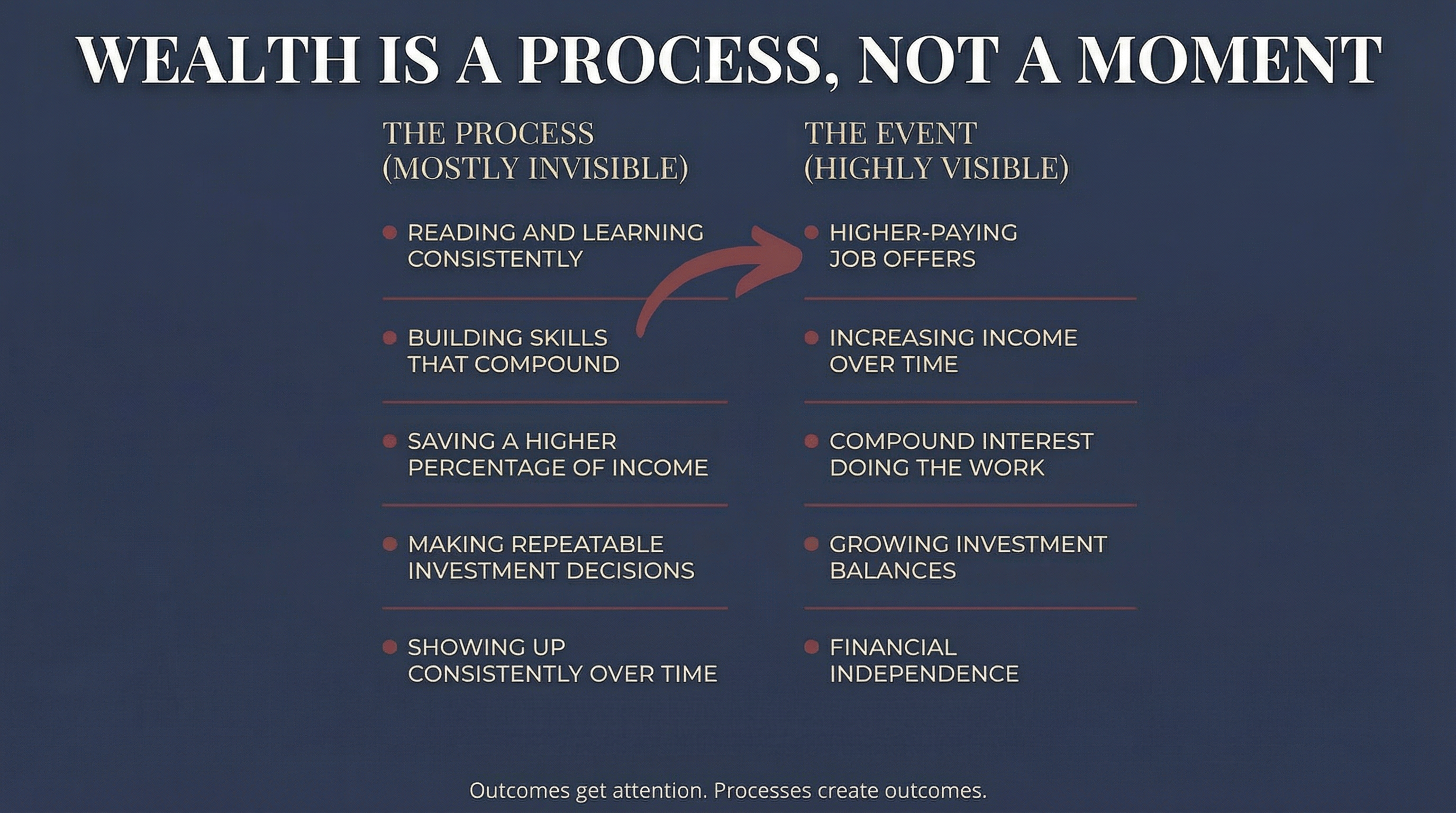 Summary: Wealth isn’t an event you stumble into. It’s the result of a process you repeat long enough for compounding to take over.