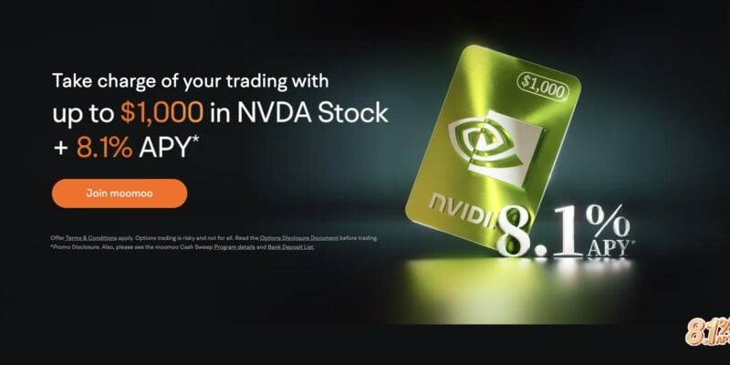moomoo is offering new users up to $1,000 in NVDA stock when you open an account and make a qualifying deposit.